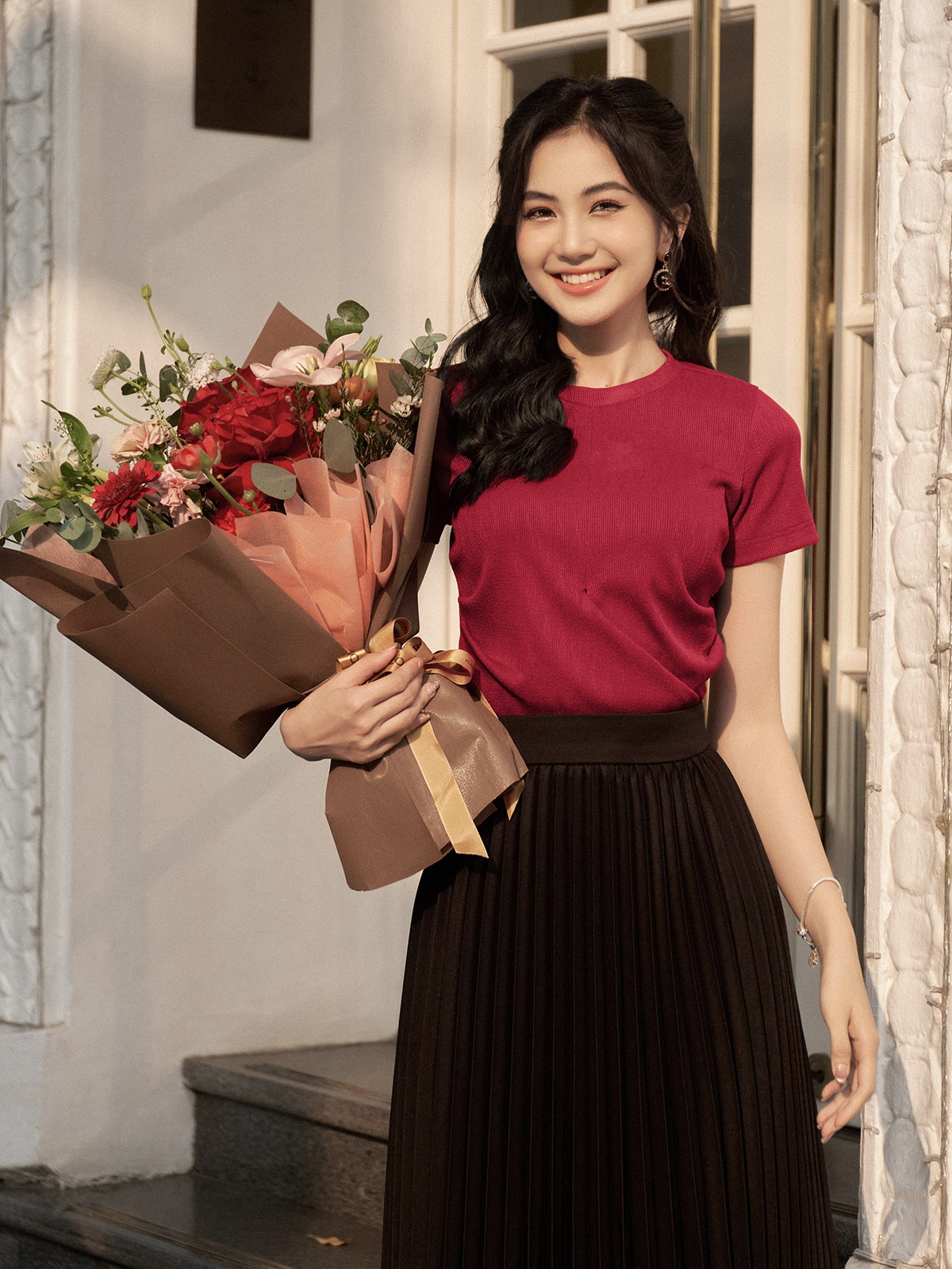 Kiểu dáng: Áo Thun tăm co dãn 4 chiều đỏ đô