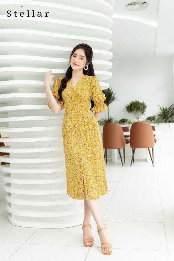 0 đánh giá về Đầm hoa midi tay bồng hoa vàng